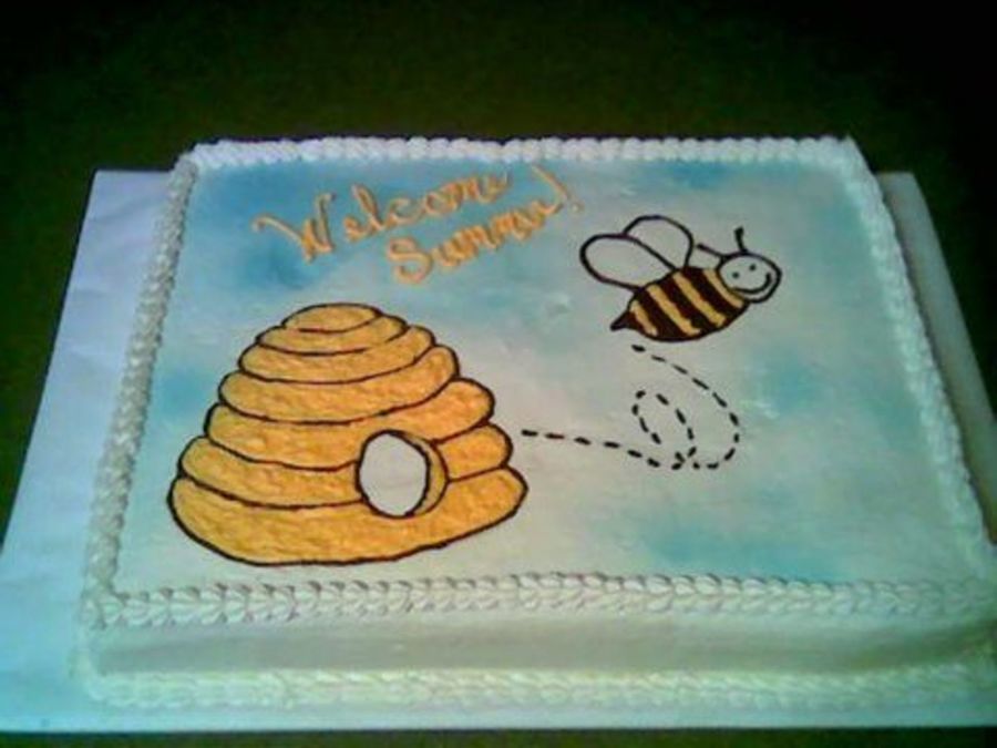 This is my second cake! I just LOVE this one! It's for a BBQ at work tomorrow. It's all BC, and I did the transfer of a drawing (2 actually) to make up the theme. I "colored" it in using BC, and I sprayed the background using the "canned" Air Brush.