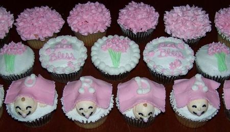 ...Got the idea from a Wilton cupcake decorating book. I used buttercream instead of fondant for the baby. Blanket is obviously fondant. Fun and pretty easy to make! Give it a try!