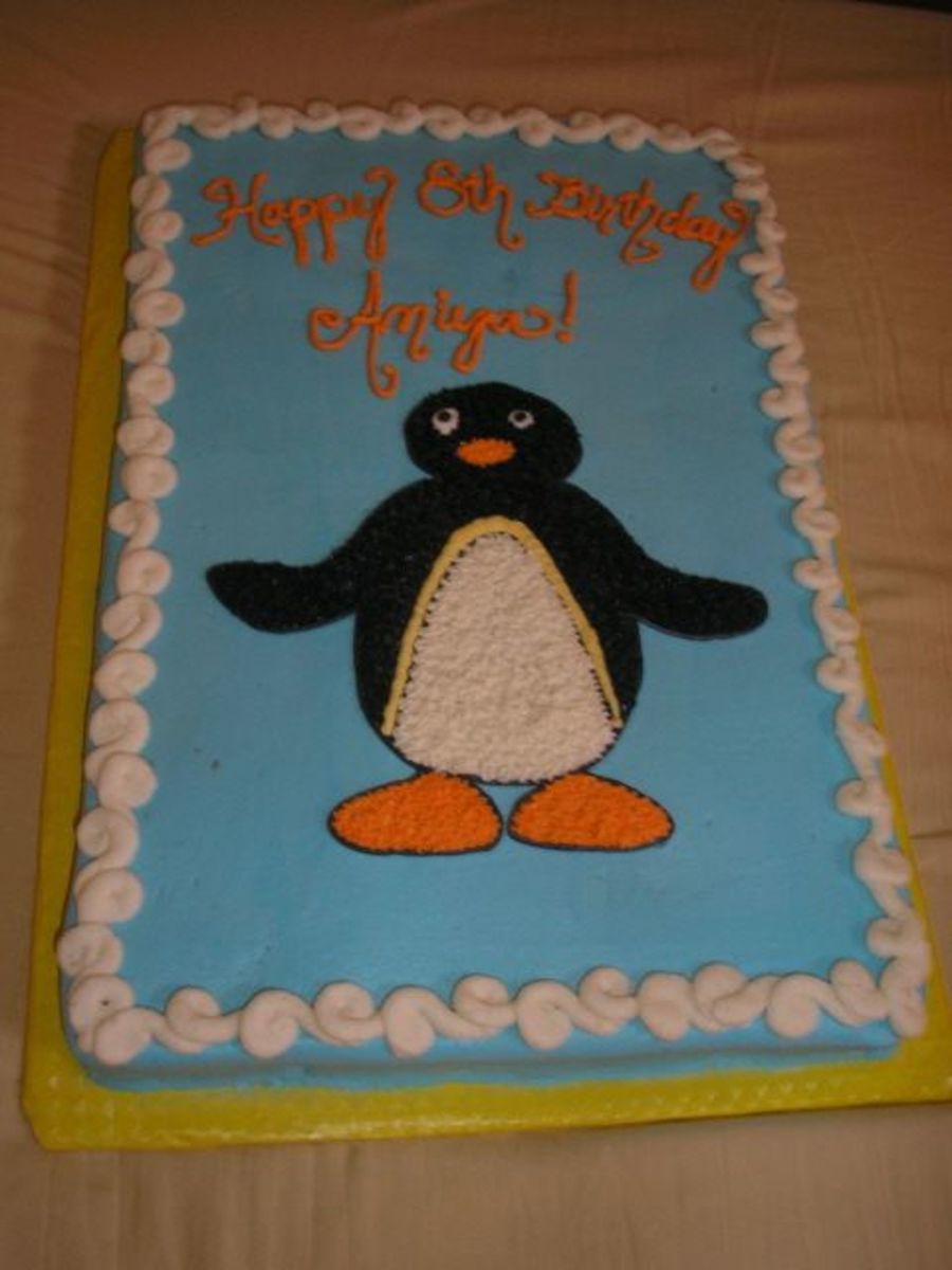 1/2 sheet, Pingu, french vanilla with buttercream icing.