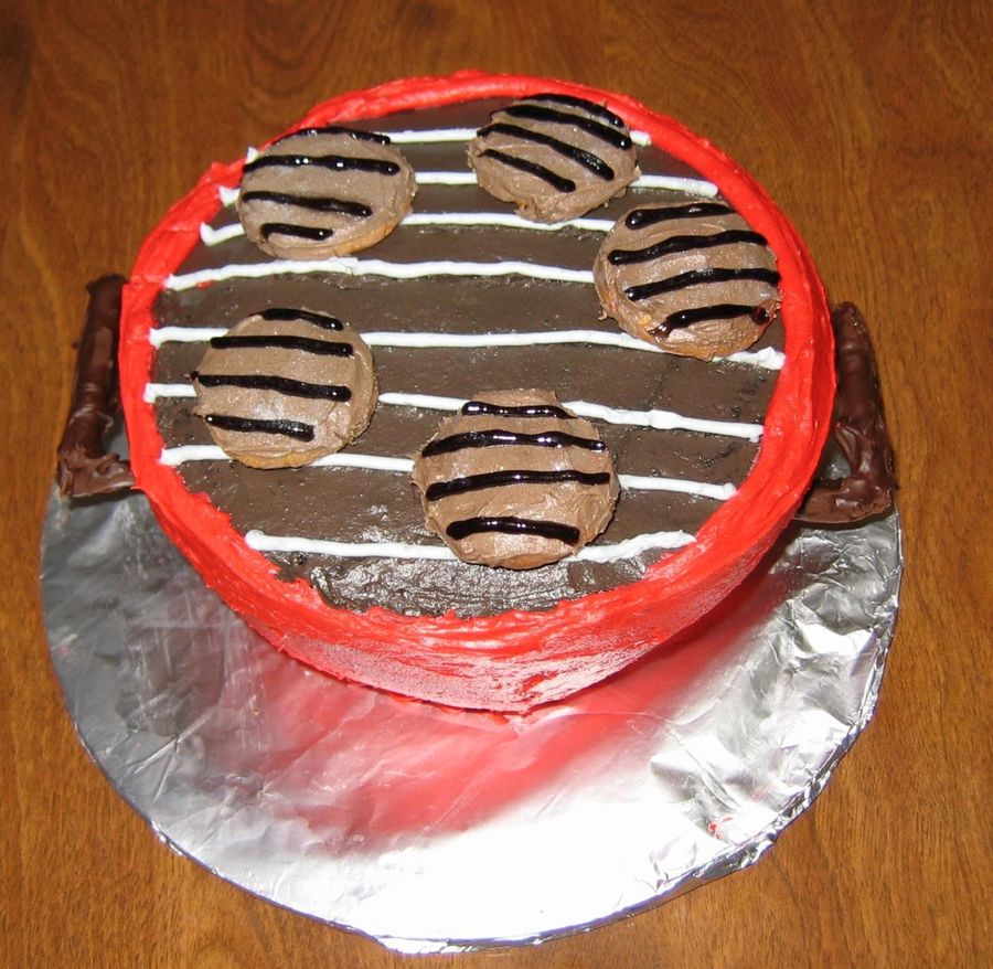 When I think of the 4th of July I think of a barbeque with my family! My cake is a chocolate cake with chocolate filling. The grill is made with at Godiva Buttercream Frosting, Mini Burgers of yellow cake, and the grill handles are chocolate covered pretzels. Happy Fourth!!!