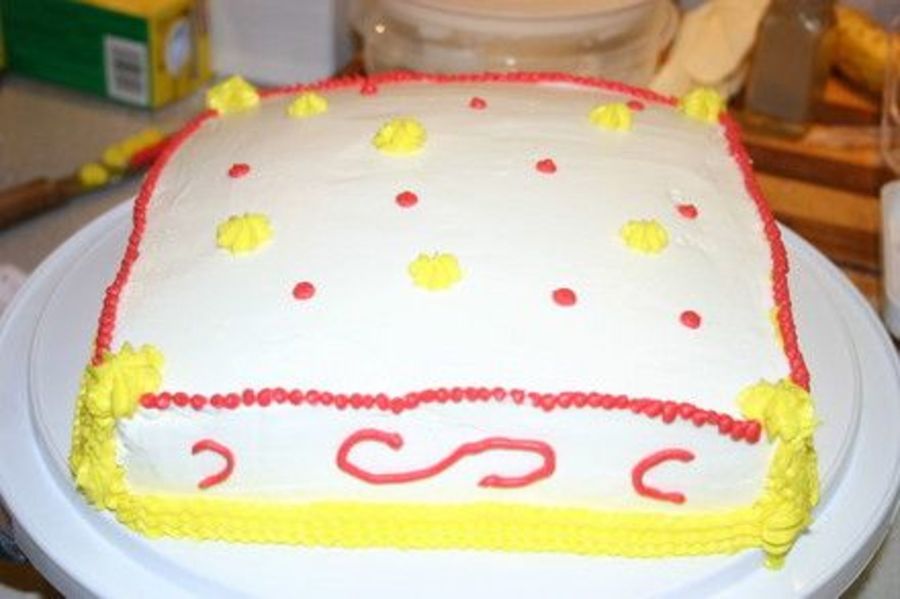 This is a practice cake that I made for my mom's Sunday School class. First square cake. Second with buttercream. It is French vanilla torted with lemon cream cheese filling.