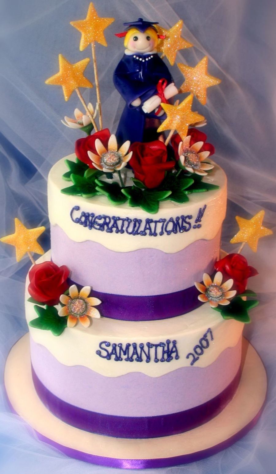 One of the best grad cakes I have seen!! I love all the colors, they go so well together. Your flowers and stars are beautiful, and you did an awesome job on the grad figure!
