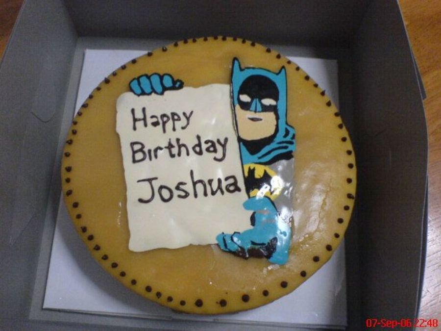 A birthday cake I made for my nephew. Batman transfer was a rectangle thus the "cut-off" on one side.