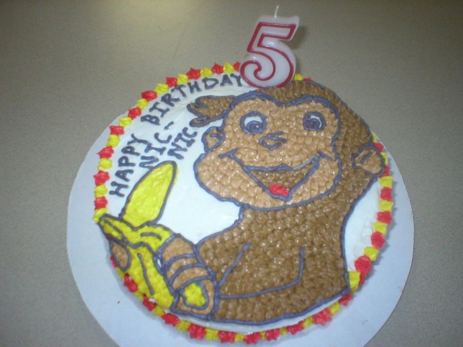 My son loves monkeys so of course Curious George was the theme for his birthday this year. I got this idea from the party paper plates that we bought. It fir perfect on this round cake.