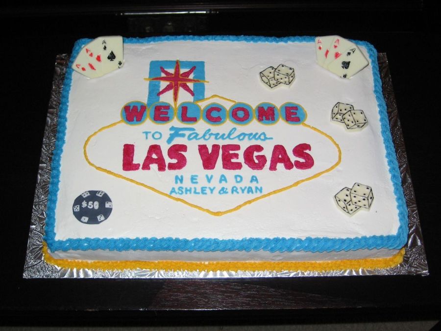 This is a cake I made for a wedding rehearsal dinner. Their honeymoon was in Vegas, and the bride wanted the cake to be a surprise for her husband. The dice and cards are made of white chocolate, and the poker chip is fondant. This was also my first FBCT.