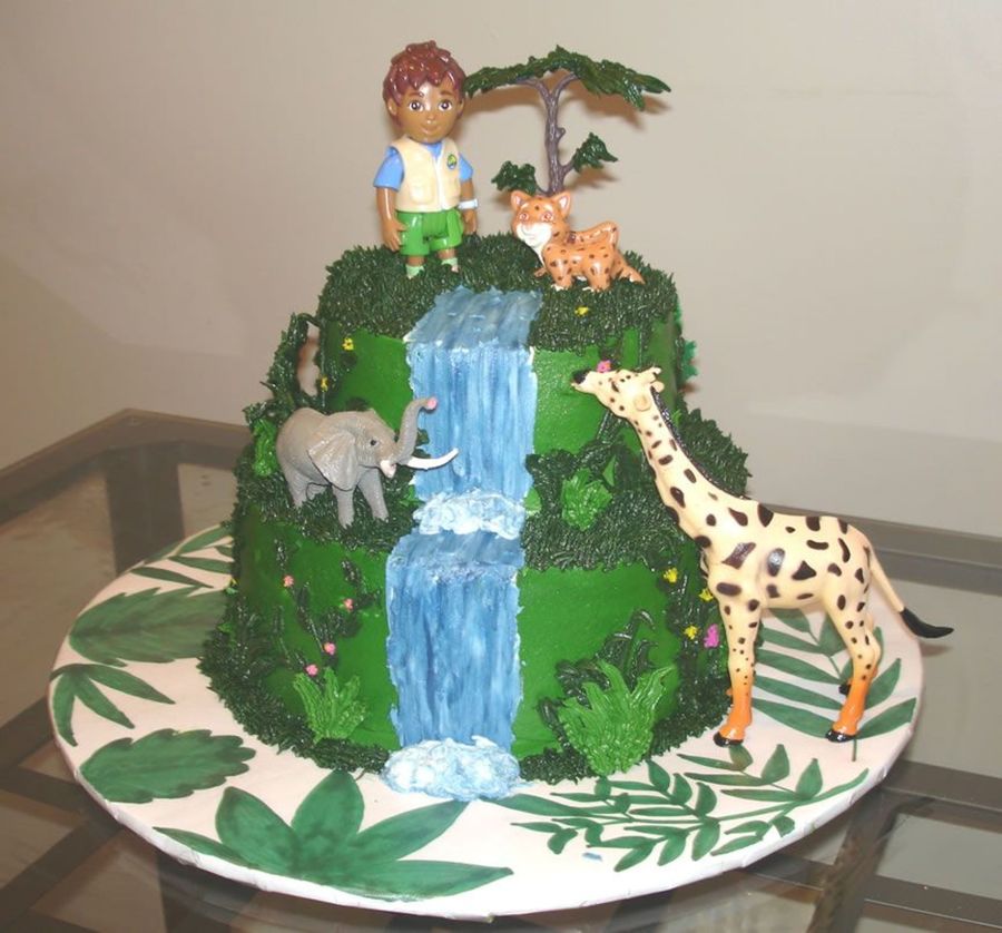 This is a copy of another Diego cake I saw on here. Sorry, I am not sure who it is. I will look for it and give them credit. I like how this turned out, but it looks much better in person than on camera for some reason. I wish I could have done some things different. I wanted to make fondant rocks and palm trees and plants instead of the buttercream, but the client wasn't paying me very much for the cake, so it wan't worth my time to do fondant. All in all I did what I could with it.
