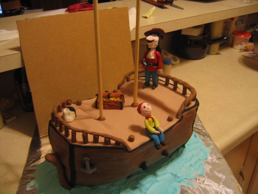 Thank you all for the compliments. For the bottom of the ship i used foam and cut this in the shape of a ship. On top of the foam i put the cake and cut this also in the shape of a ship. Everything what you see is made of fondant except the wooden stick! The Captain is standing with a little bit of help of a toothpick.