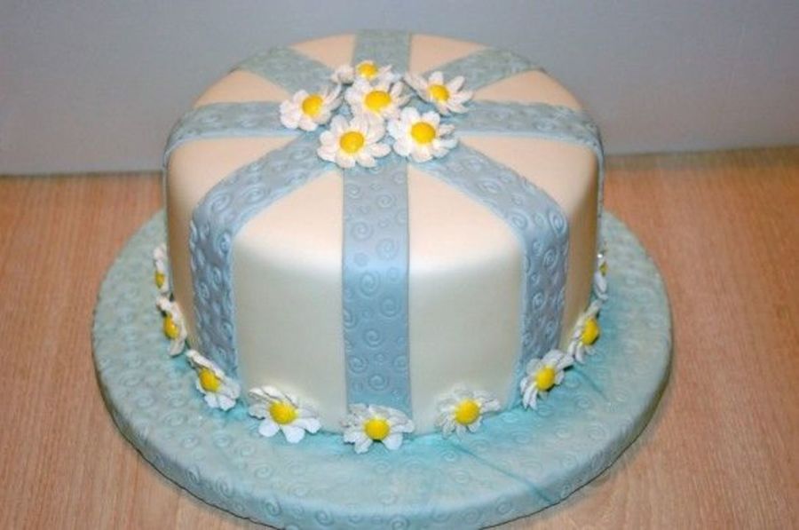 This is the cake I made for our first "project" for the wilton fondant flowers course. I thought it was just going to be making flowers, but we were supposed to cover a board in fondant and then the cake and put it on top. I've never done a board w/fondant. It was kind of fun. I added royal icing flowers to finish the look because we have not done the fondant flowers yet (and it looked undone w/out flowers).