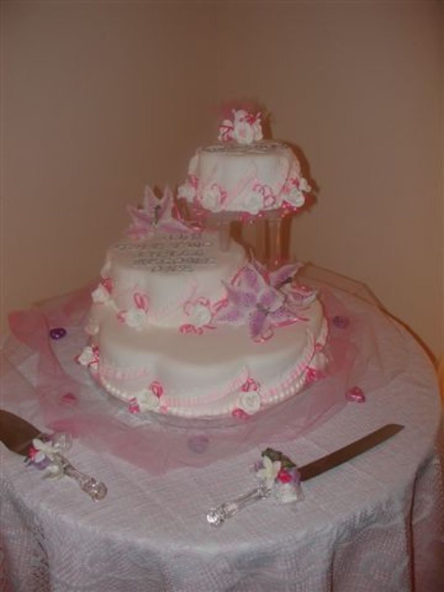 This cake was made for a friend that wanted thier cake completely fake. I tried to talk her out of it, but she insisted. She wanted to display it in a glass case in her living room. The stargazer's are gumpaste and my first attempt at them.