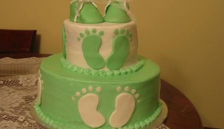 This is the only picture of the cake that was small enough KB wise to put on here, I haven't learned how to shrink them yet....oh, well. It was a white cake with fonfant. I did the letters in royal icing and then painted them with luster dust. The scrolls are in butter cream.