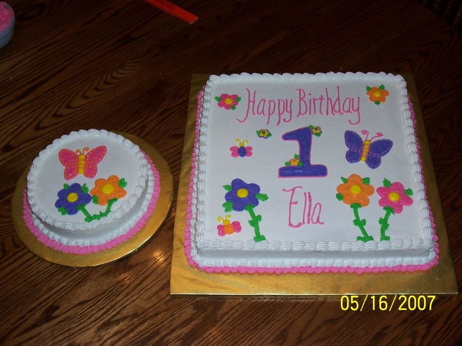 This is a white/almond cake with BC icing. I used a piping gel transfer and cookie cutters for all of the flowers and bumble bees.