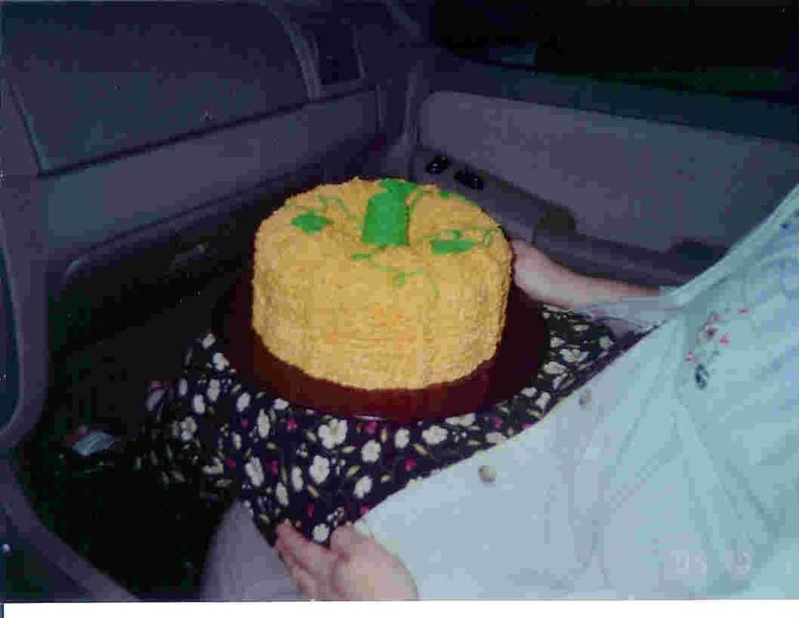 This was an easy and yet very cute cake. It is two bundt cakes one is upside down and the other on top of it. I used and ice cream cone for the stem.