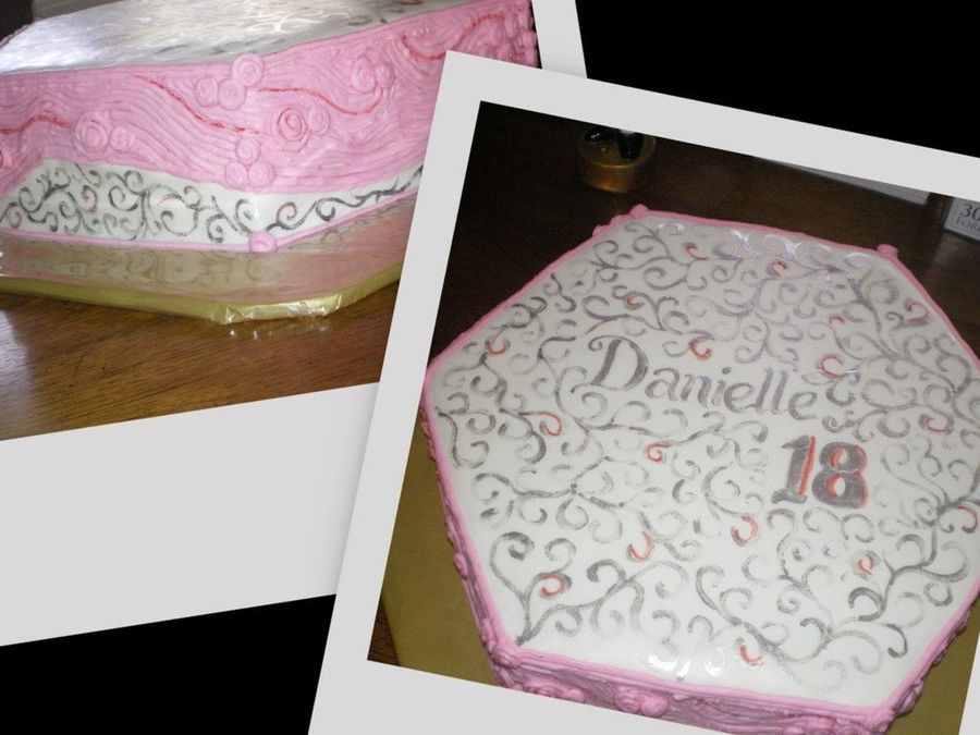 Beautiful cake. The scroll work on top is wonderful and I love what you did on the sides. :D