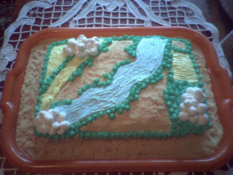 Chocolate gingerbread cake, chocolate filling, decorated with whipped cream and biscuits. Got the inspiration from my airplane flight. :)