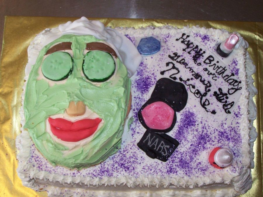 Thanks to some inspiration on CC I made this fun cake for my daughters friend. It was a tenth birthday spa night for the "girls" and they had a blast! The cake is mostly BC and all the features are fondant! I found this cake to be so much fun to make and deliver! The company that ran the party was impressed!! Thanks for viewing!