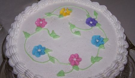 sweetbaker on 18 Sep 2006 , 4:11pm Nicely piped flowers covering the top and good addition adding the yellow centers to pick up the color of the border.