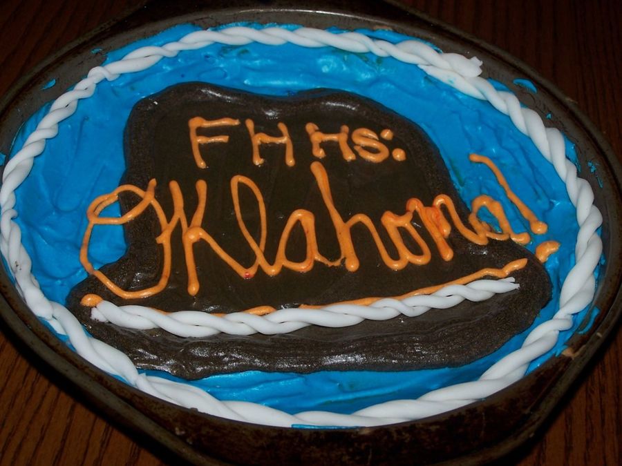 Cookie Cake from my high school musical, Oklahoma. The rope is fondant.