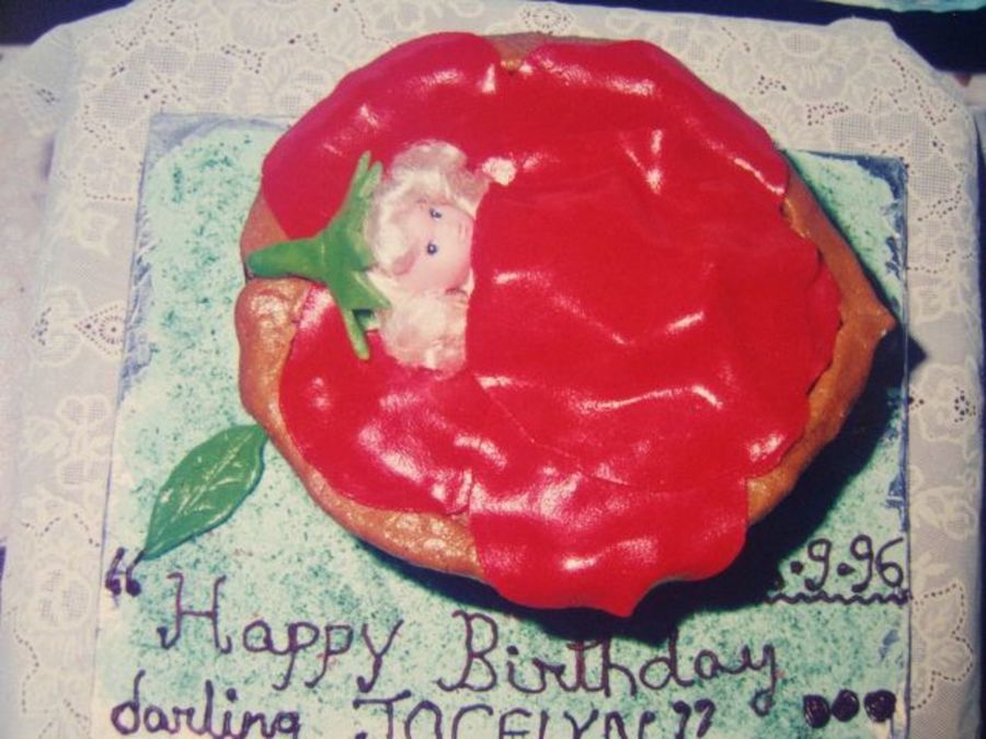 chocolate cake, with marzipan petals, well the walnut cannot be seen on this pic ! i need to upload the other picture as well to view it!