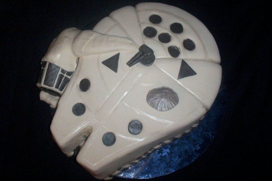 It is not carved. It is a round cake with some "dummy" pieces (the pieces that are the back of the ship). It also has a paper cup for the thingy hanging off the side. The cake is fondant . The guns and the dish are gumpaste. I used a icing tip to cut the circles out of the cake and replaced them with black circles (also cut out with icing tips). Then painted the lines on the cake with pearl dust and vodka. Kind of dented the cake where the lines go with the paint brush to make it look like the toy did.