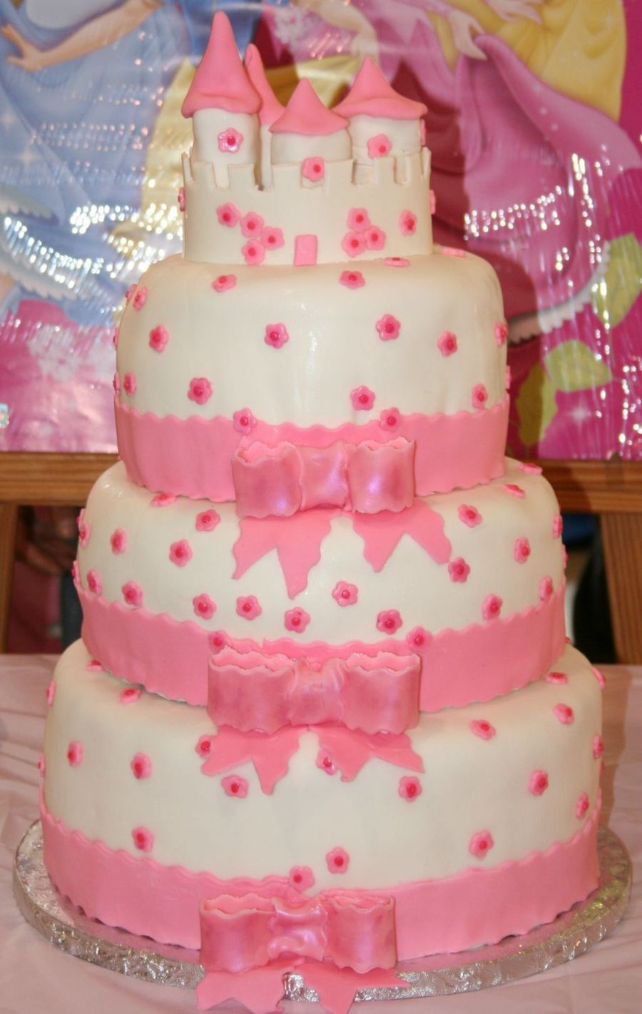 Three tiered covered in mmf and fondant. Towers are rice crispy treats and i really wasnt sure how to make them. accents are mmf with some luster dust.