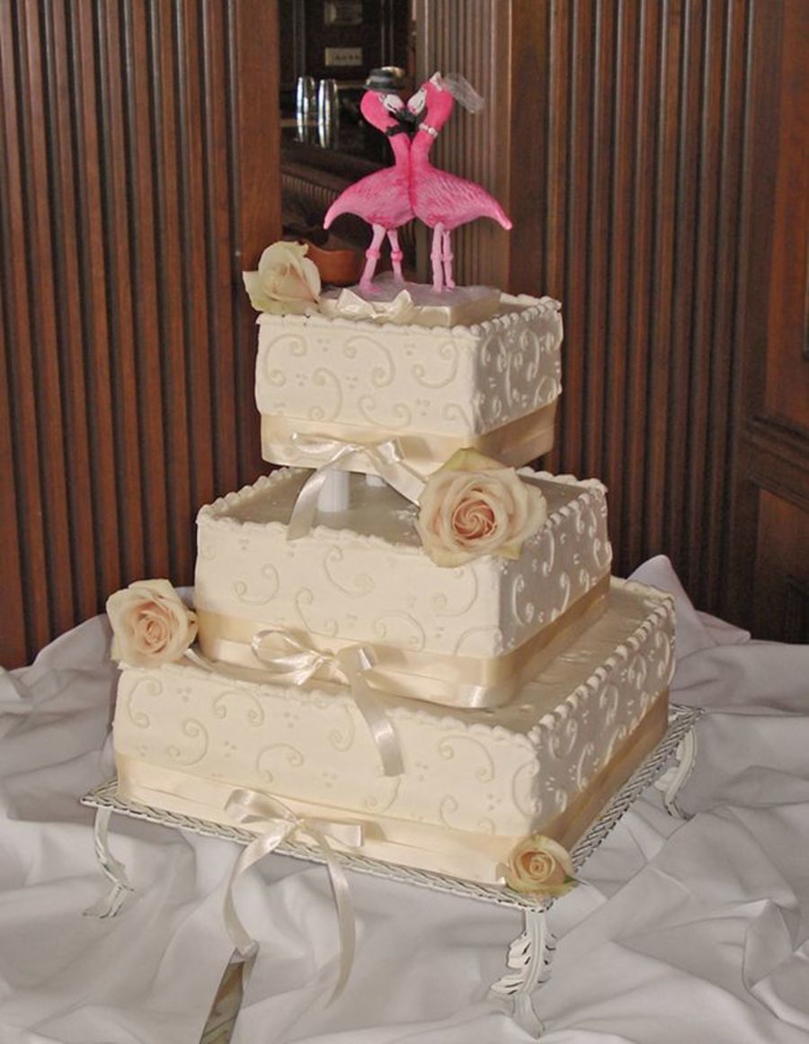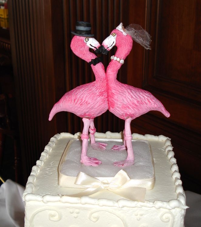 The cake is beautiful, the flamingos show off the fun side of the couple. Very nice.