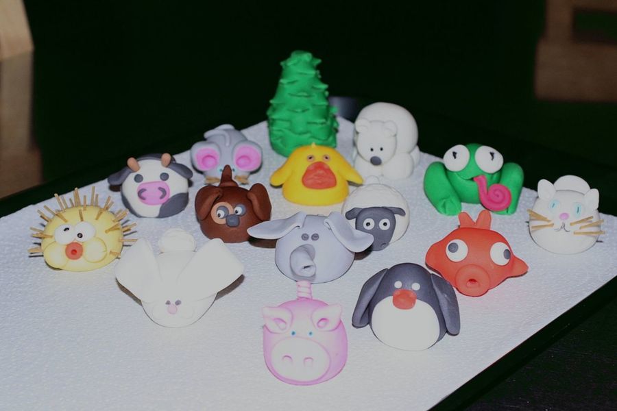 I demonstrated how to make these during the 2007 San Diego County Fair this year, I had 1 hour. Most of these were made per request from children in the audience. If you can make a ball out of fondant, you can make these! I got these ideas from polymer clay books!