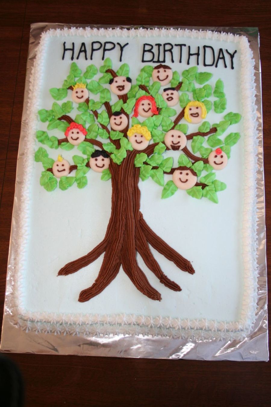 I made this for someone's family reunion to celebrate all of the yearly birthdays. The faces are made from leftover royal icing circles.