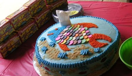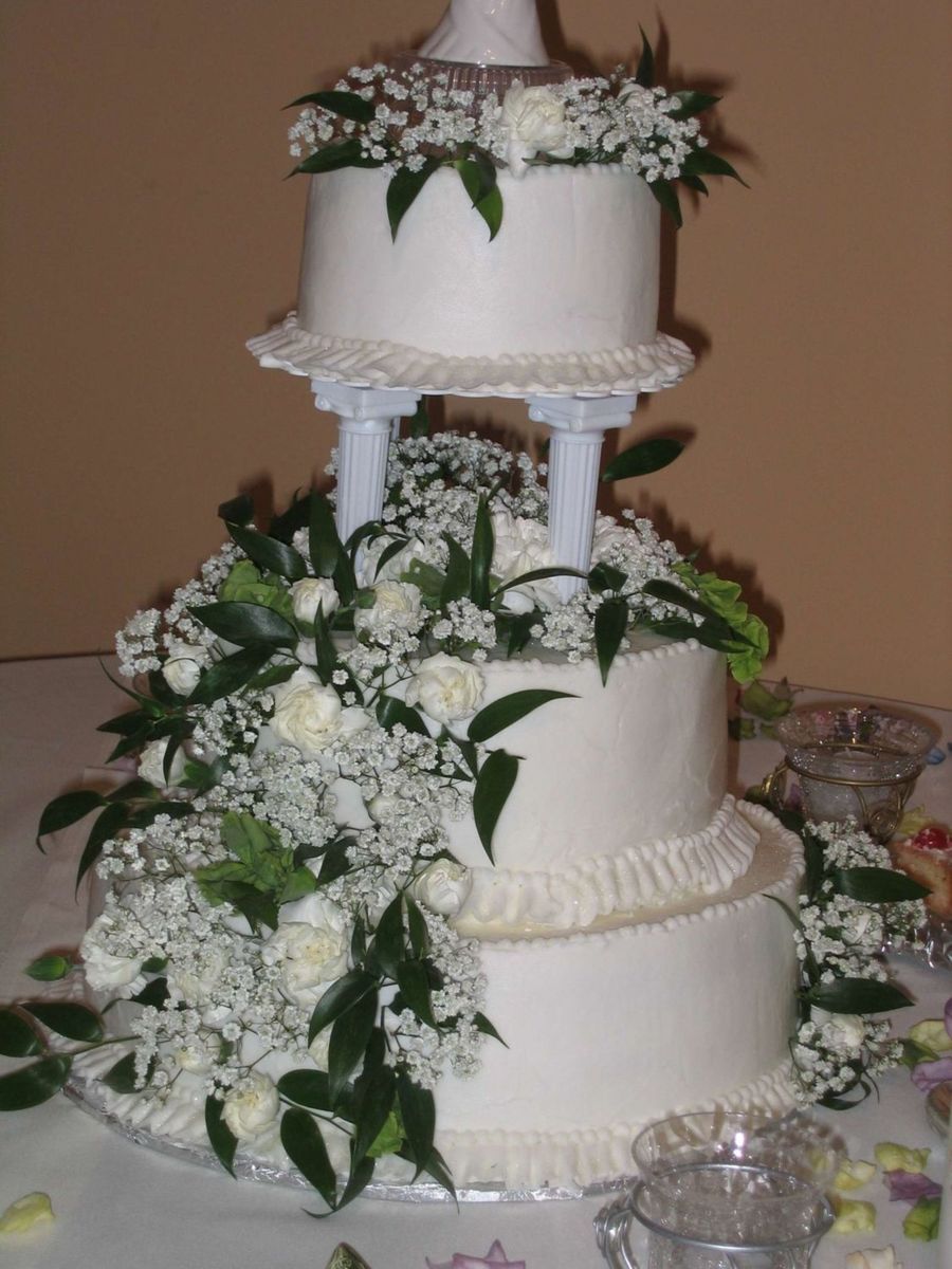 Buttercream. Had trouble cutting bottom layer straight. Very nervewracking assembling cake.
