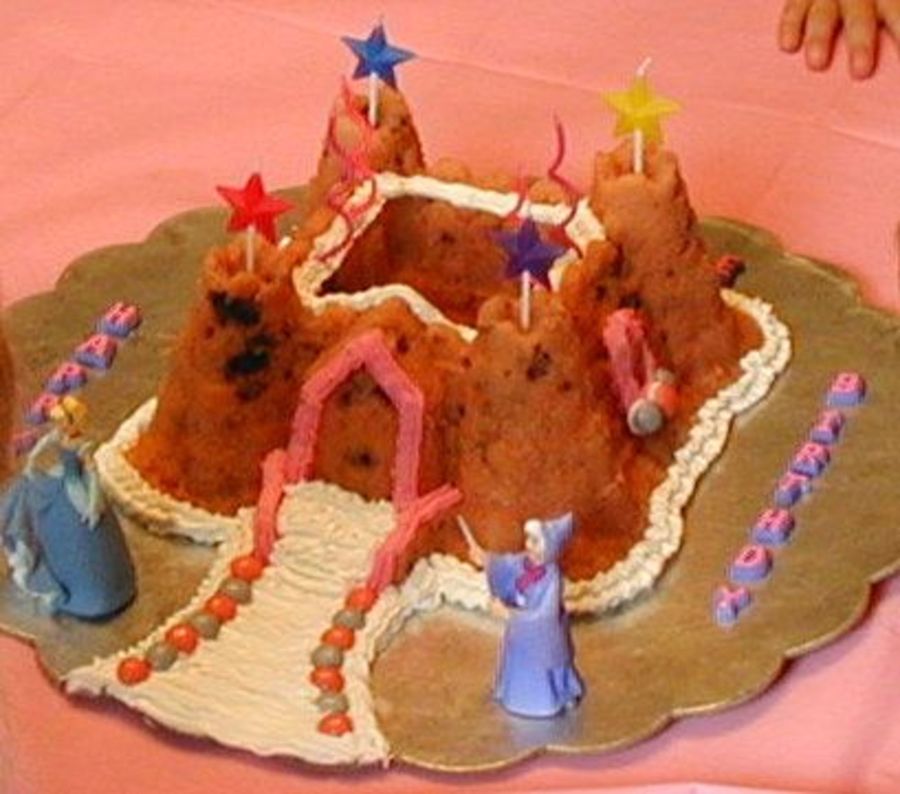 Made of strawberry pound cake in a castle pan