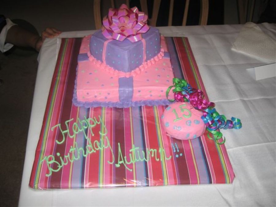 16th birthday present cake. fake bow, frosted in buttercreme.