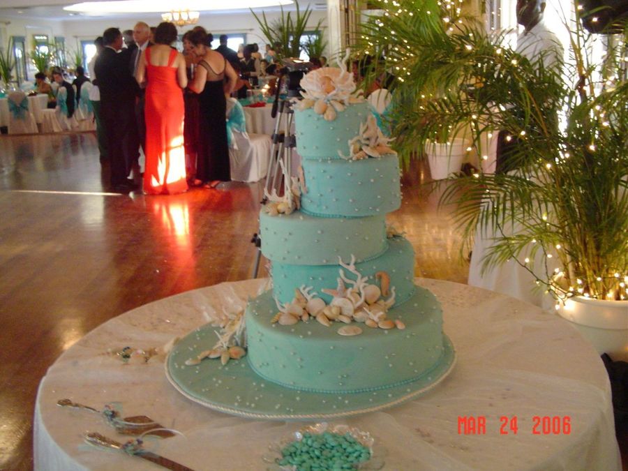 Angie I can't believe I added this cake to my favorite and then didn't leave a comment. I simply love it, seascapes are my favorite theme for a wedding and this is one of the best I've seen done. The color and the construction are wonderful.