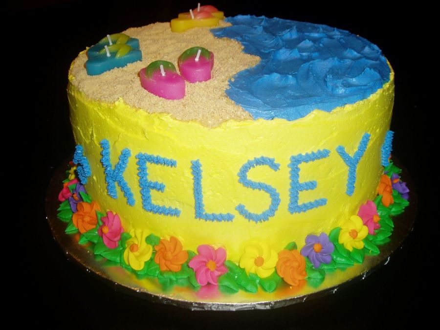 cherry chip cake with coconut flavoured BC.sand is graham cracker crumbs(idea from this site).