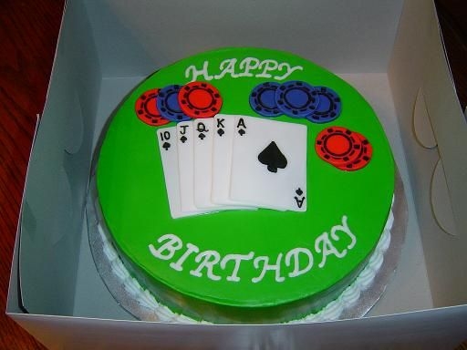 Another poker cake. Cake is covered in buttercream with fondant accents.