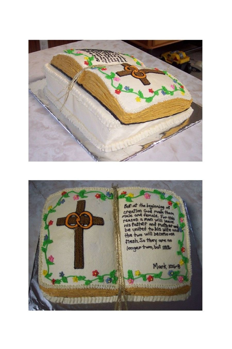 This cake was made for a Preacher's wedding reception.