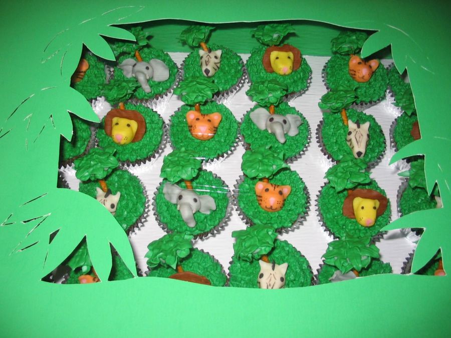 These cupcakes were inspired by the cover of a Wilton magazine. Instead of using molds for the animals, I used white chocolate clay and hand molded the heads, then applied the details with a paint brush. I added a jungle style cake box for extra fun for the first graders.