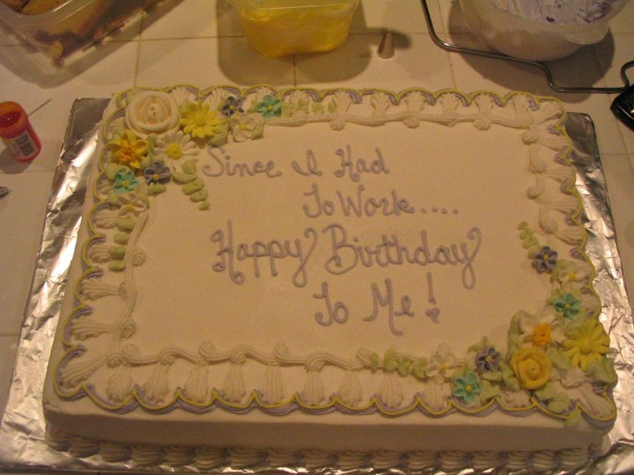 You go girl!! Happy Birthday to you!! I think if you have to work, they should buy you lunch...you are offering the dessert.....very pretty cake btw...I love the double border!!
