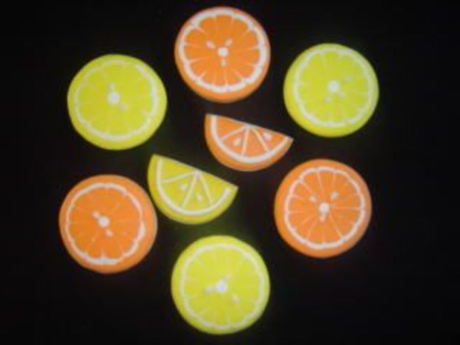 These orange and lemon slices were made with Penny's sugar cookie recipe. The "whole" slices were made using royal icing and the "quarter" slices were made using fondant.