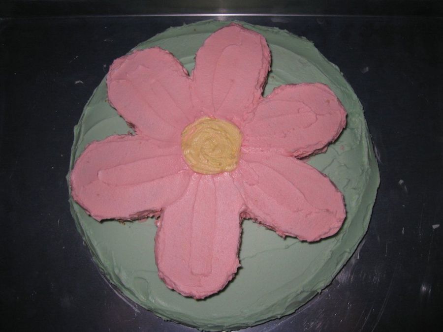 It actually is the christening cake I made for my niece. A carved flower on a 14". Yellow cake with all butter BC.