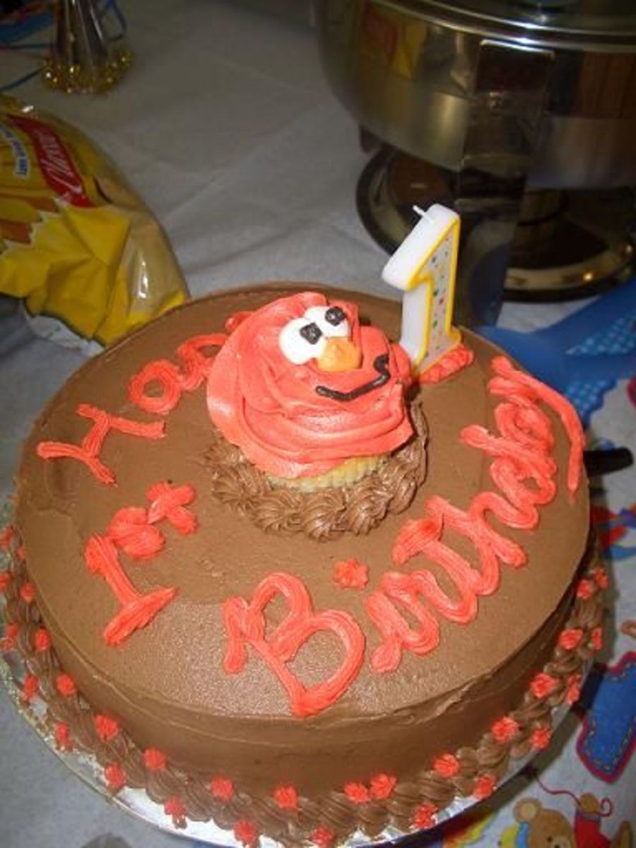 This was the smash cake I made for my son's 1st birthday. I ran out of meringue powder so my frosting was like goop. I also made 48 cupcakes to go with it, so I took one and placed it on top of the cake. He loved it.