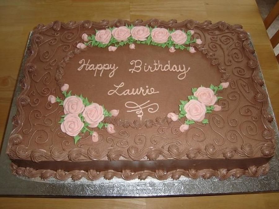 Chocolate and Vanilla 1/2 sheet with chocolate BC and RI roses.