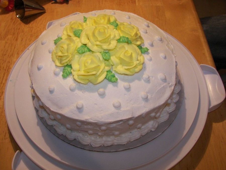 My Wilton course 1 cake. I decided for yellow roses to be different!