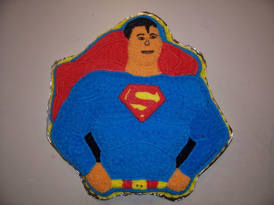 1977 DC comics Superman. This one was a little difficult because the original cake pan comes with a plastic face and superman symbol. I had to compromise a little and just draw on the face myself and I sketched the symbol on cardboard first and then iced over the cardboard so it could be perfect. Overall I was pretty pleased.