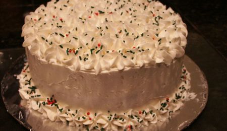 I did this cake just to taste the flavors . . . spice cake, apple filling (from the cake supply store), buttercream frosting. I decorated it in a hurry so I wouldn't be late for work!