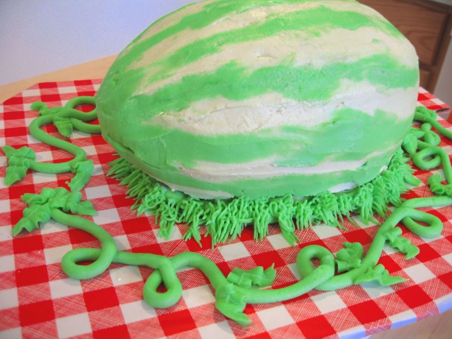 I made this for a BBQ/Picnic and it was really fun! I used the Wilton Easter Egg pan/chocolate mold and used strawberry kool-aid to color the cake red. I added mini chocolate chips for "seeds". The icing is all BC.