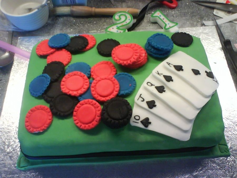 This is my first real effort at making a proper iced cake. I made it for my friend who is a poker fanatic and he loved it! The cake is a chocolate sponge, with chocoalte BC filling, and the icing is all fondant. Sorry the picture isnt great, forgot to take a proper one before it got demolished lol!