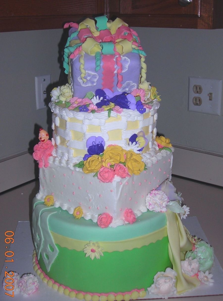 4-tiers of colorful fun! each teir has a different decorating