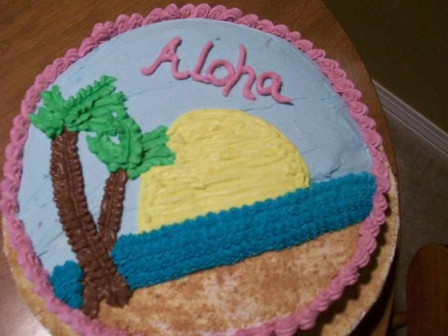 Done in buttercream with graham crackers for the sand. The sides are done with a small star tip to resemble the side/roof of a straw hut