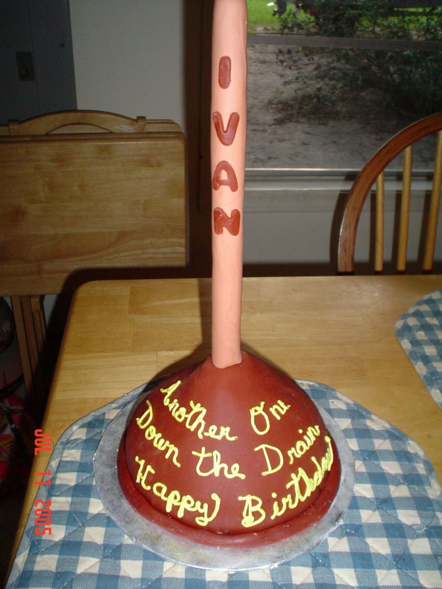 That is one great cake! very imaginative....I would never have thought of making a plunger! Very well done. I'm sure the recipient will be tickled