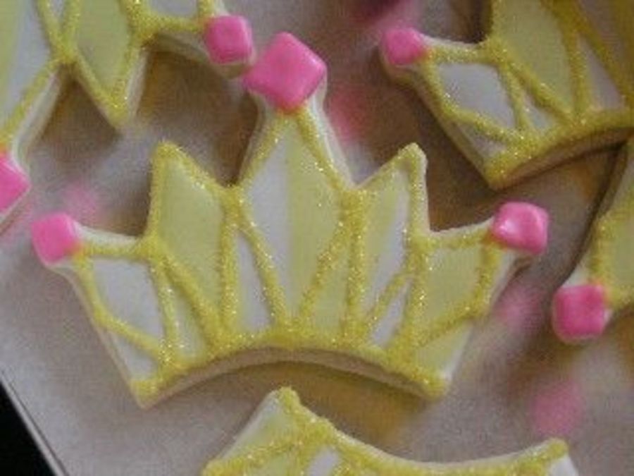 I get many orders for crown cookies for all the princesses I do orders for. This Mom really wanted gymnastics, but, I didn't have any cutters for that. She sent me a copy of the invites, which, was a little stick girl on a balance beam. She had told me to go with the princess shaped cutters, but, the little stick figure was so kitchy, I wanted the crowns to that way, too. I liked them alot.