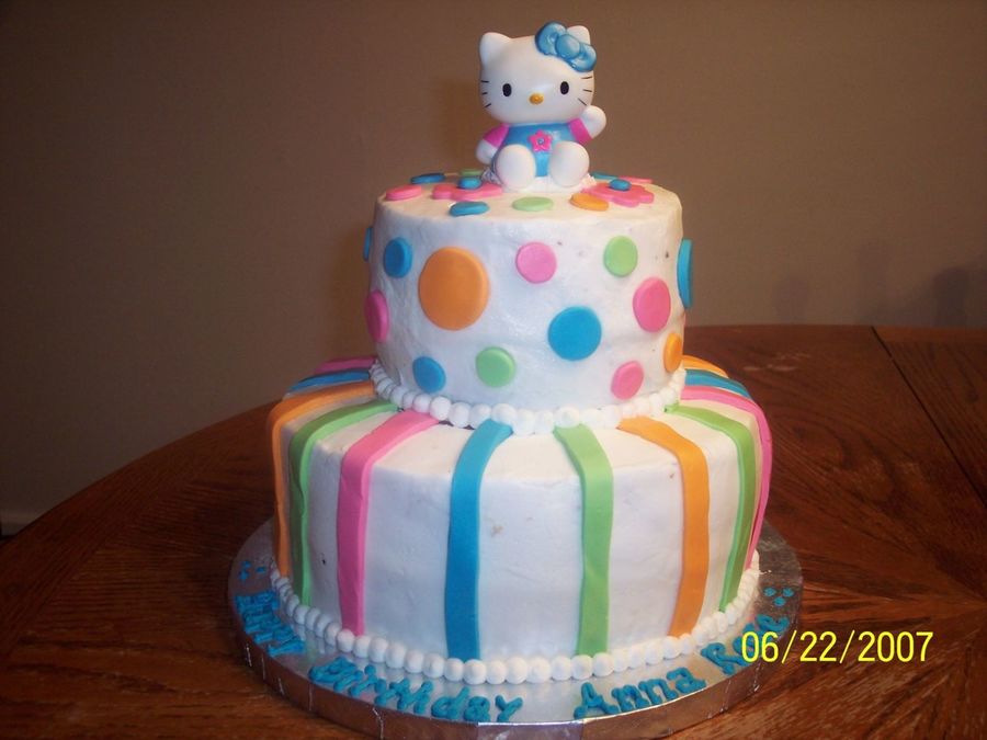 Butter cream frosting w/MMF accents. 10 inch and 6 inch layers. This was my first stacked cake. I made it for my little girl's 5th b-day! She loved it!!